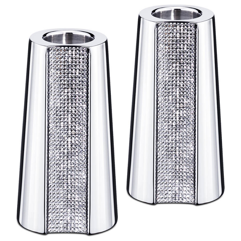 Эта пара миниатюрных подсвечников, минималистичного и довольно изящного дизайна, озарит сиянием ваше застолье. Каждый из них украшен прозрачными кристальными шатонами, которые красиво преломляют свет. Произведения чётких очертаний и простых форм привлекают внимание отполированной поверхностью нержавеющей стали. Декоративный объект. Не игрушка. Не подходит для детей младше 15 лет. | |