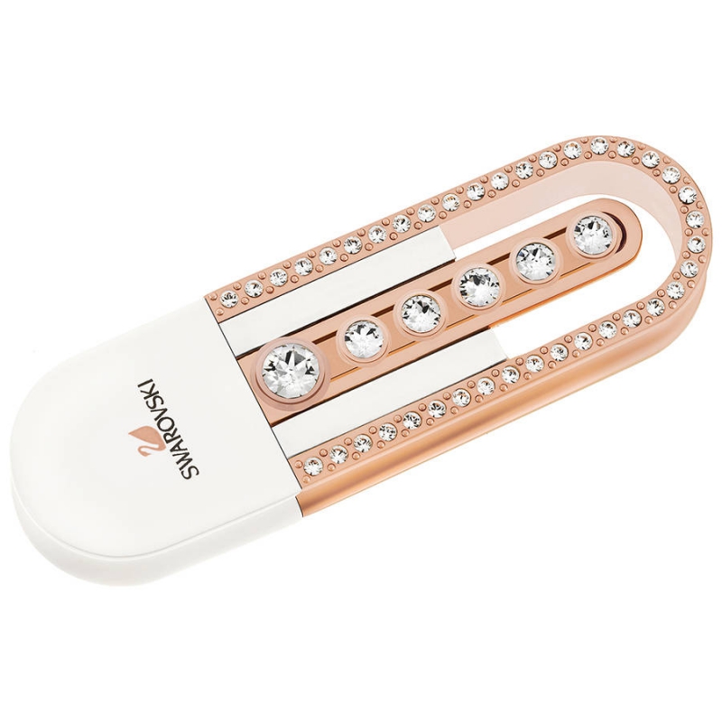 Эта очаровательная элегантная флеш-карта объёмом 8 Гб украшена пятью подвижными и одним зафиксированным кристаллом в обрамлении из 39 кристаллов в закрепке паве. Белая поверхность и металл цвета розового золота красиво блестят. Эта флеш-карта легко помещается в любую сумочку и станет прекрасным подарком. | |