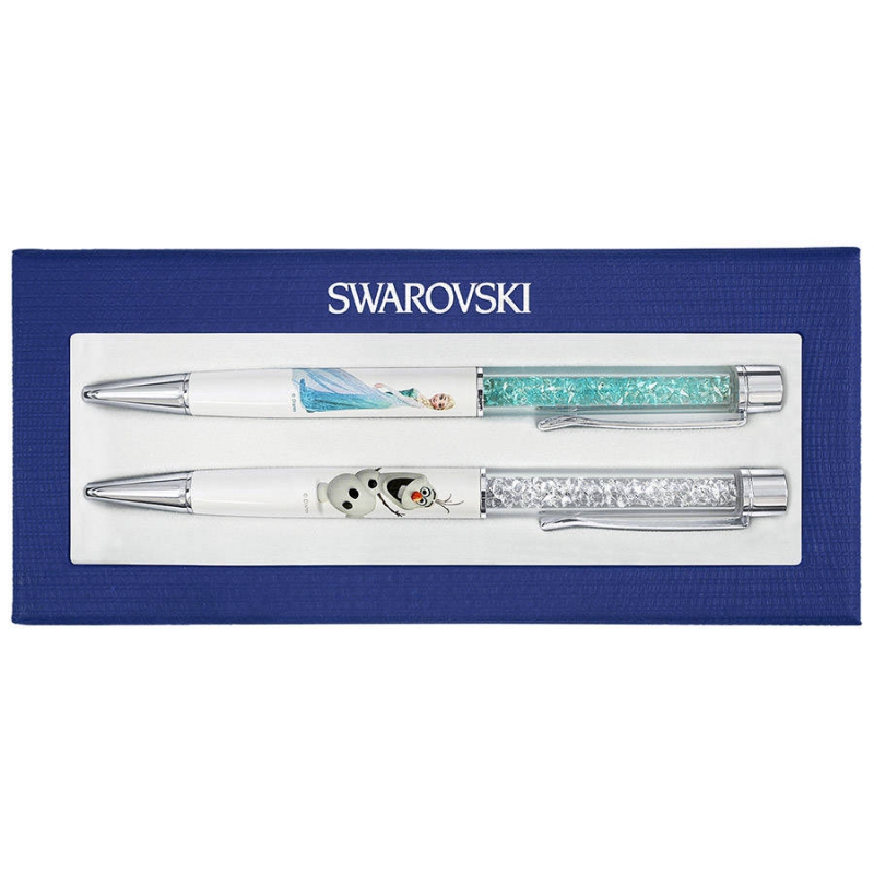 Это идеальный подарок для тех, кому понравился мультфильм «Холодное сердце». Набор состоит из двух изящных белых ручек с изображением персонажей популярного диснеевского мультфильма. Одна заполнена 160 голубыми кристаллами и украшена изображением Эльзы. Другая, со снеговиком по имени Олаф, сверкает 160 прозрачными кристаллами. Эти ручки продаются в изящном синем футляре. | |