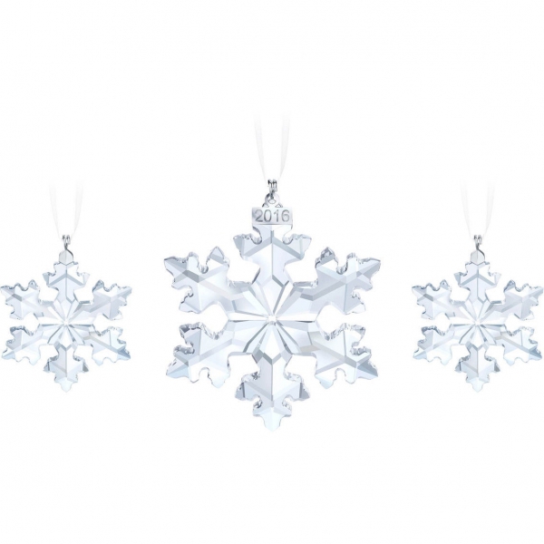Этот потрясающий комплект можно приобрести только в 2016 году. Он создаст у вас дома волшебную рождественскую атмосферу. В состав комплекта входит рождественское украшение специального выпуска 2016 года и два украшения «Маленькая снежинка». Эти изысканные произведения сделаны из прозрачных кристаллов. К каждому из них прилагается белая атласная лента. Эти украшения идеально подойдут для ёлки, окна и праздничного стола. Комплект продаётся в особом треугольном футляре. Это идеальный подарок на любой праздник в 2016 году. Декоративный объект. Не игрушка. Не подходит для детей младше 15 лет. |