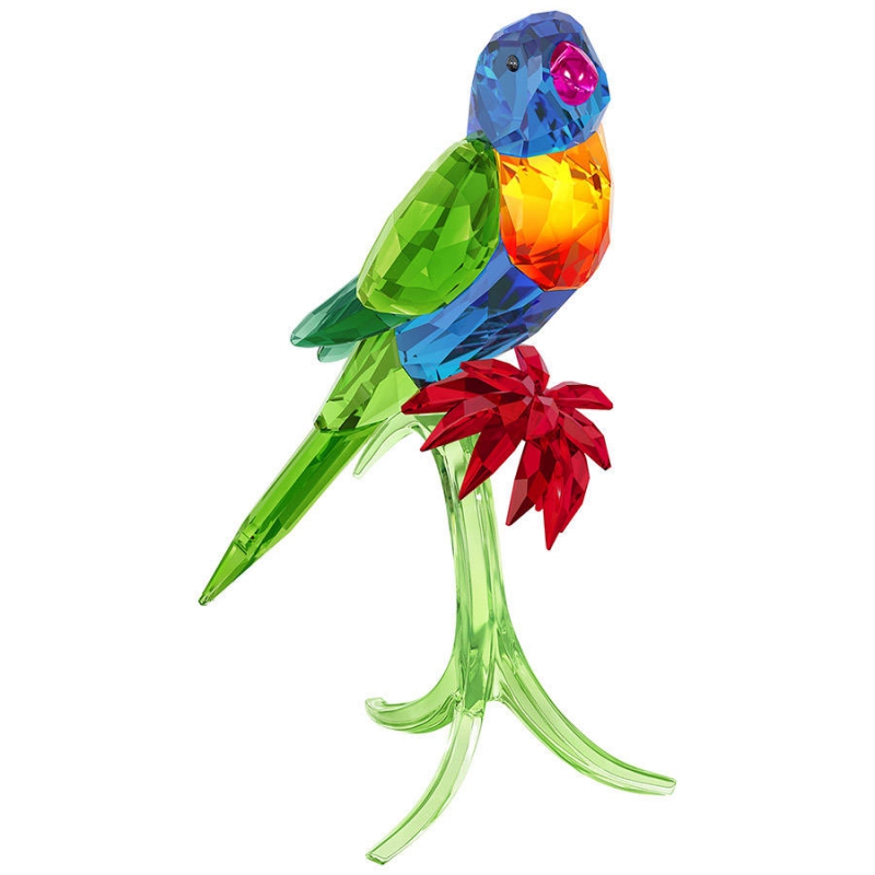 Образец изысканного мастерства. Источником вдохновения для создания этого изделия послужил тропический лес. Классическая фигурка попугая целиком сделана из кристаллов. Радужный лорикет изумительной красочной расцветки с 655 гранями стоит на зелёной кристальной подставке. Цвет градиента на грудке варьируется между экземплярами, поэтому каждое произведение уникально. Декоративный объект. Не игрушка. Не подходит для детей младше 15 лет. | |