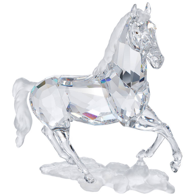 Этот впечатляющий жеребец обязательно оставит яркое впечатление. Эта крупная фигурка сделана из прозрачных кристаллов с глазами цвета Topaz. Грива, хвост и подставка сделаны из неограненных матовых кристаллов. Декоративный объект. Не игрушка. Не подходит для детей младше 15 лет. | |