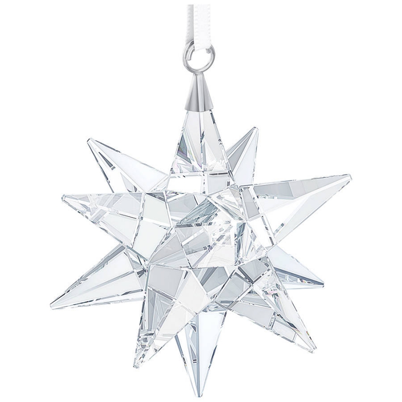 Попросту головокружительно. Это изысканное трёхмерное украшение в виде звезды из прозрачных кристаллов и серебристого металла преломляет лучи света, рассыпая вокруг себя мириады искр. Звезда висит на белой атласной ленте. Декоративный объект. Не игрушка. Не подходит для детей младше 15 лет. | |