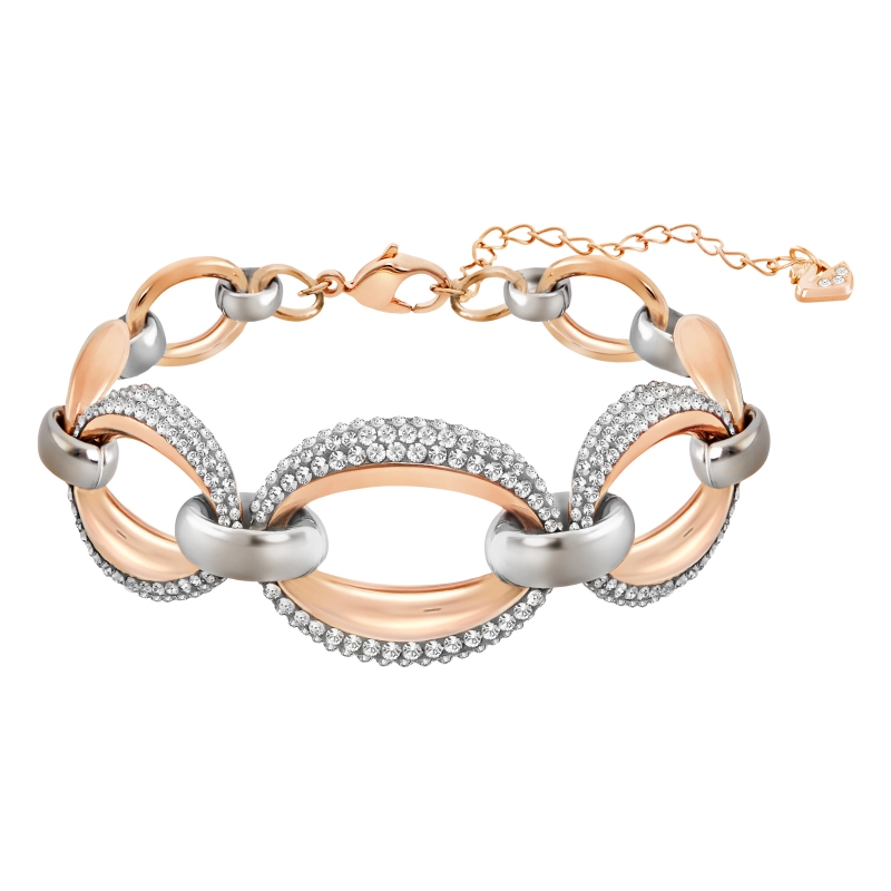 Смелый органический дизайн. Этот актуальный браслет сделан на основе цепочки панцирного плетения с покрытием из разных металлов. Блестящие поверхности и тёмные кристаллы в закрепке Pointiage® создают изысканный современный образ. | |