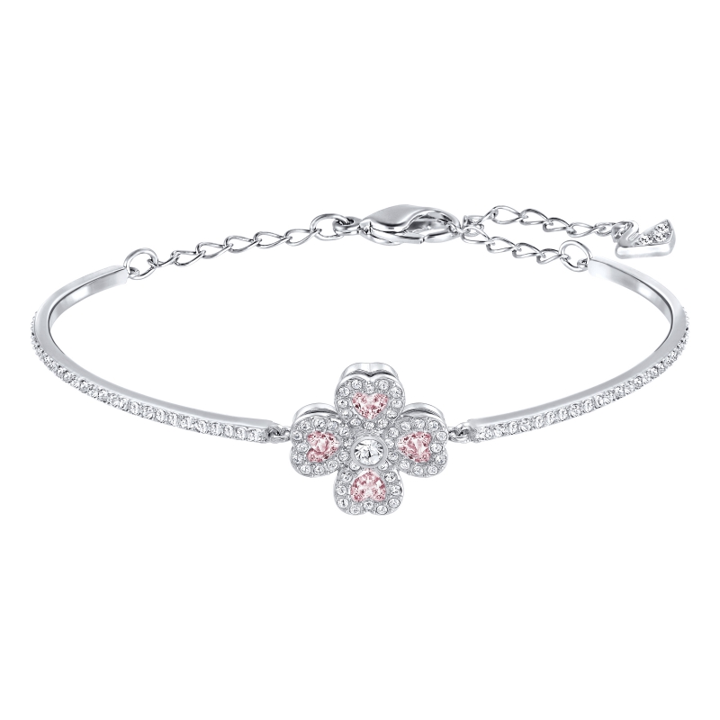 Классическое романтичное произведение очень женственной расцветки. Этот жёсткий браслет с родиевым покрытием станет прекрасным подарком, в том числе и для себя. Кристальные сердечки и два слоя кристального паве складываются в изящный мотив. Верхний слой вращается, так что можно выбрать одну из двух форм: четырёхлистный клевер или цветок. Наденьте его вместе с часами Swarovski, и получится стильный дневной образ. | |