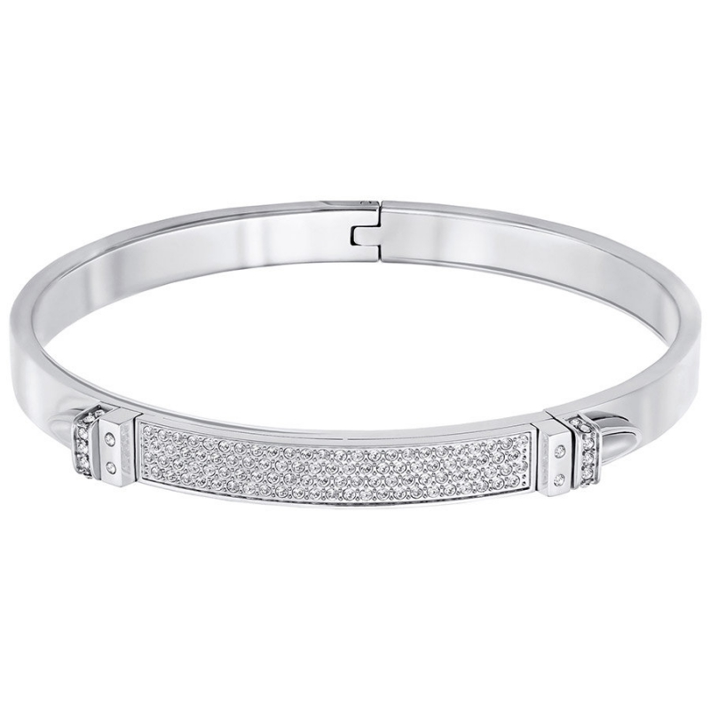 Этот блестящий браслет (среднего размера) из нержавеющей стали с прозрачным кристальным паве роскошно смотрится и отдельно, и в сочетании с другими браслетами. Украшение изящного современного силуэта дополнено двумя очаровательными пряжками: функциональной и декоративной. Это идеальное приобретение для каждой модницы.