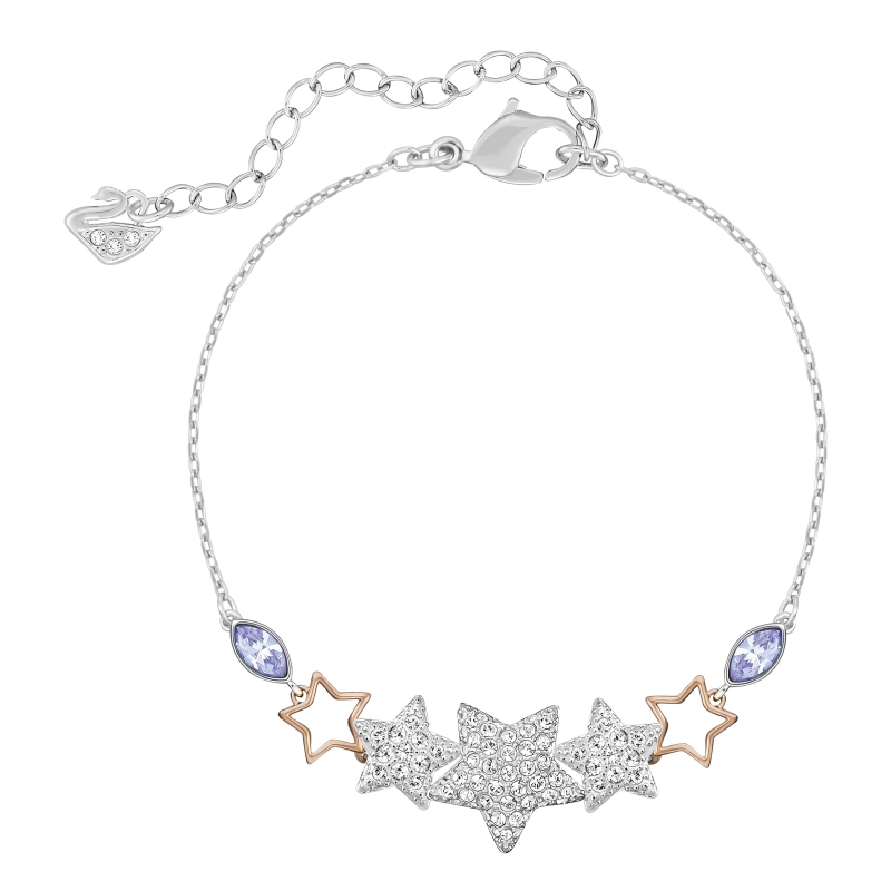 Этот элегантный праздничный браслет состоит из трёх звёзд, покрытых прозрачным кристальным паве, двух металлических звёзд с покрытием из розового золота и двух синих кристаллов. Эта контрастная расцветка выглядит восхитительно. Регулируемая застёжка-карабин обеспечивает надёжную фиксацию. | |