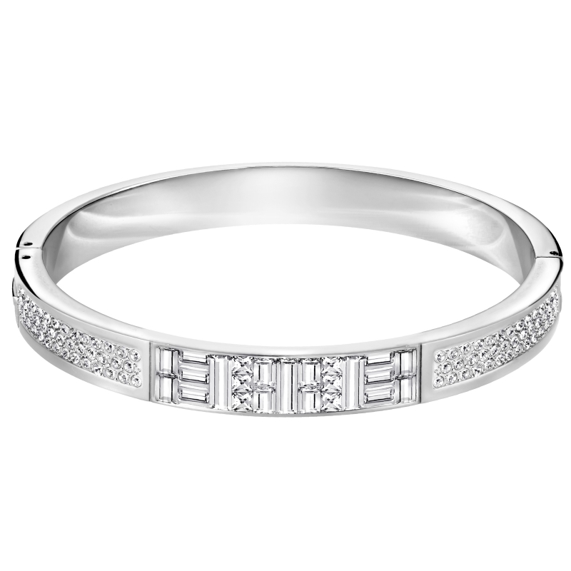 Наденьте его отдельно, чтобы внести в образ ноту сдержанного стиля, или подберите броский комплект браслетов. Прозрачное кристальное паве сочетается здесь с роскошными прозрачными кристаллами огранки «багет» и блестящими декоративными элементами из нержавеющей стали. Такое шикарное современное украшение обязательно должно быть у каждой. Мы также предлагаем варианты маленького и большого размера.