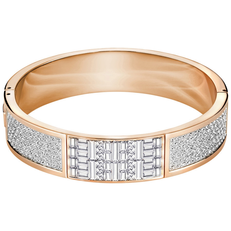 В широком браслете Ethic прозрачное кристальное паве сочетается с роскошными прозрачными кристаллами огранки «багет» и металлическими декоративными элементами с покрытием из розового золота, нанесённым осаждением паров. Это чарующее произведение прекрасно смотрится отдельно и производит большое впечатление в сочетании с другими браслетами. Мы также предлагаем варианты маленького и большого размера.