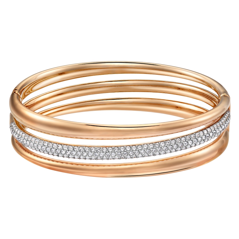 В этом браслете классический стиль сочетается с современным дизайном. Он внесёт ноту роскоши в ваш повседневный образ. Металлическое украшение плавного силуэта покрыто полированным розовым золотом и сверкающим прозрачным кристальным паве. Такая яркая вспышка блеска обязательно произведёт на всех большое впечатление. Мы также предлагаем варианты маленького и большого размера. | |