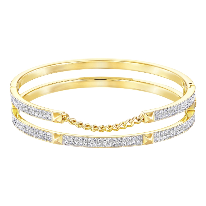 Современный блеск в рокерском стиле. Этот изящный, очень изысканный жёсткий браслет выведет любой образ, как дневной, так и вечерний, на новую высоту. Этот уникальный многослойный браслет сделан из жёсткой цепочки, позолоченных металлических шипов и прозрачного кристального паве. Он удачно сочетается с другими украшениями. | |