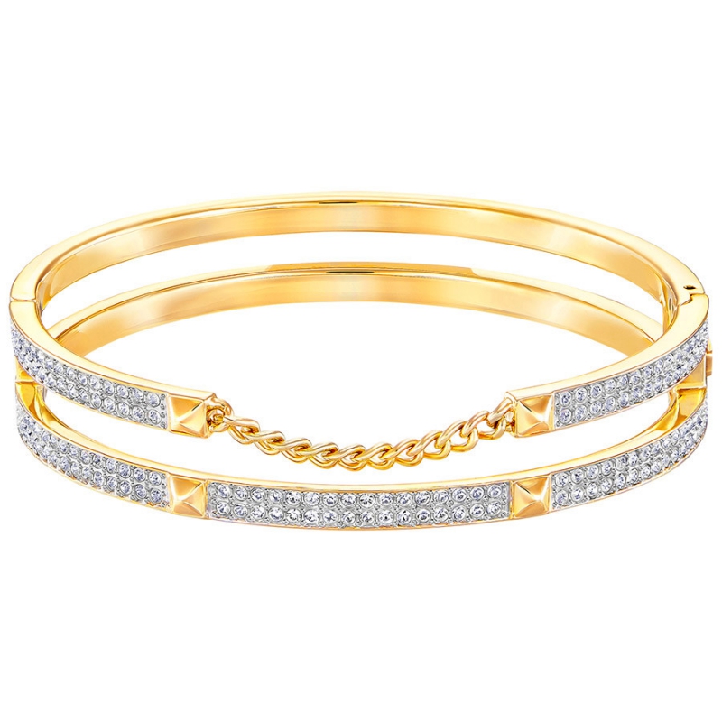 Современный блеск в рокерском стиле. Этот изящный, очень изысканный жёсткий браслет выведет любой образ, как дневной, так и вечерний, на новую высоту. Этот уникальный многослойный браслет сделан из жёсткой цепочки, позолоченных металлических шипов и прозрачного кристального паве. Он удачно сочетается с другими украшениями. | |
