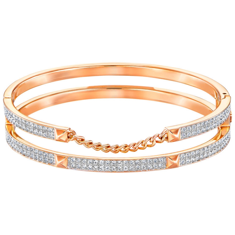 Современный блеск в рокерском стиле. Этот изящный, очень изысканный жёсткий браслет выведет любой образ, как дневной, так и вечерний, на новую высоту. Комплекты колец сегодня на пике моды. В этом уникальном изделии жёсткая цепочка с металлическими заклёпками, покрытыми розовым золотом, красиво сочетается с прозрачным кристальным паве. Он удачно сочетается с другими украшениями. | |