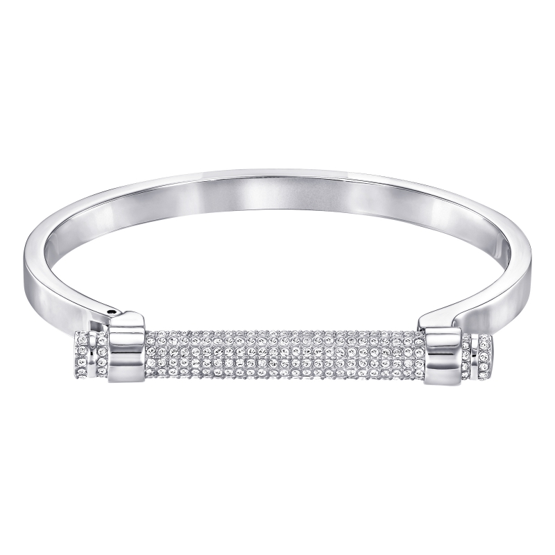 Этот плоский и жёсткий сверху браслет с палладиевым покрытием выглядит очень современно. Застёжка в виде планки с кристальным паве прекрасно вписывается в общий дизайн. Чтобы её открыть, надо нажать на кнопку.Это изделие замечательно сочетается с другими украшениями Swarovski.