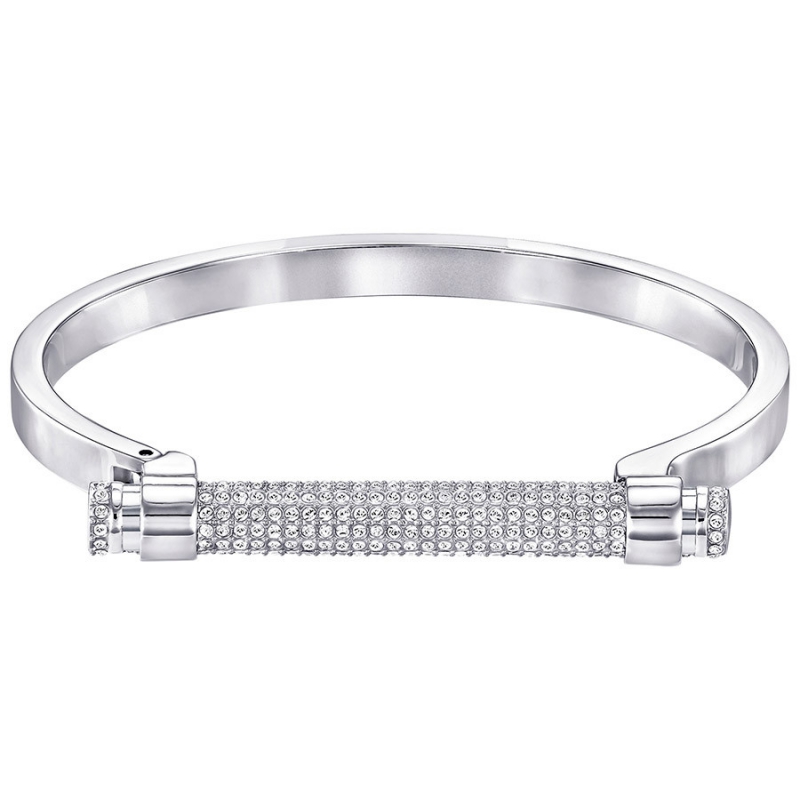 Этот плоский и жёсткий сверху браслет с палладиевым покрытием выглядит очень современно. Застёжка в виде планки с кристальным паве прекрасно вписывается в общий дизайн. Чтобы её открыть, надо нажать на кнопку.Это изделие замечательно сочетается с другими украшениями Swarovski. | |