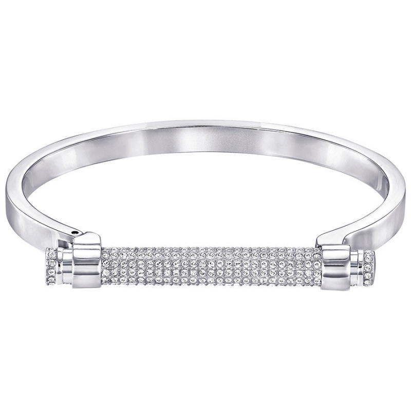 Этот плоский и жёсткий сверху браслет с палладиевым покрытием выглядит очень современно. Застёжка в виде планки с кристальным паве прекрасно вписывается в общий дизайн. Чтобы её открыть, надо нажать на кнопку.Это изделие замечательно сочетается с другими украшениями Swarovski. | |