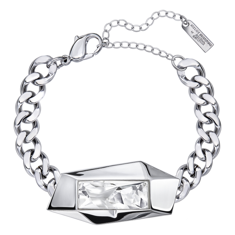 созданный Жан-Полем Готье, словно отражает тему совершенства несовершенства. Драматичный центральный элемент сделан из прозрачного кристалла огранки Kaputt, созданной этим дизайнером, в скульптурном гнезде с родиевым покрытием. Он сверкает на броской цепочке, покрытой тем же металлом. Этот броское актуальное украшение внесёт в вашу коллекцию элемент подиумного шика. Добавьте широкий браслет аналогичного дизайна для создания интересного контраста. | |