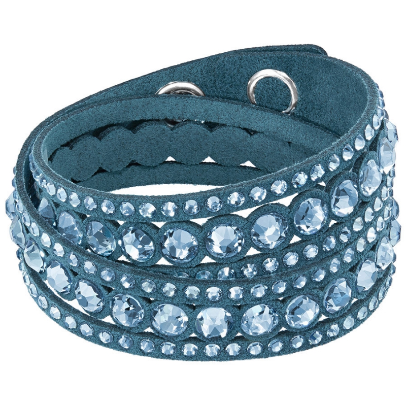 Новинка популярной коллекции Slake придаст изысканного блеска любому костюму. Браслет из зелёной алькантары инкрустирован кристальным градиентом разных оттенков цвета морской волны и украшен новыми крупными камнями круглой огранки. Его можно носить отдельно или дополнить другими браслетами и серьгами с каркасами Slake, чтобы получился более яркий образ. Длина браслета – 36 см. | |