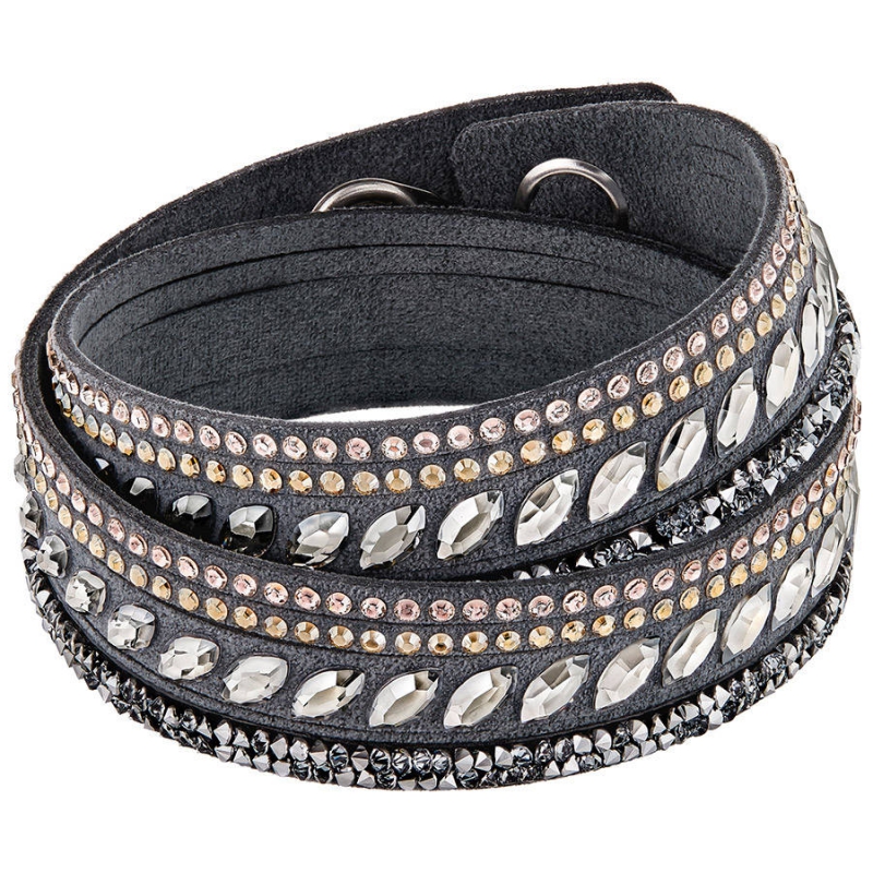 Потрясающая новинка популярной коллекции Slake обязательно приобретёт статус классического изделия. Это поистине модное произведение из серой алькантары инкрустировано кристальными шипами, круглыми кристаллами, хромом и полосами Crystal Rock. Его можно носить отдельно или совместно с другими украшениями для максимального эффекта. | |
