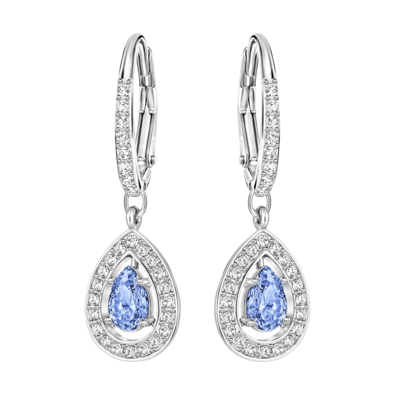 Потрясающая новинка популярной коллекции Swarovski Attract. В этих серьгах ореол из прозрачного кристального паве ярко сияет по периметру центрального элемента каплевидной формы голубого цвета. Металл покрыт родием, поэтому он не потемнеет. Размер серёг – 3 см. | |
