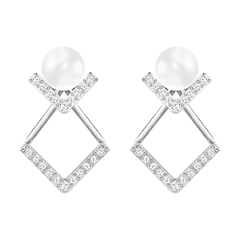 Два образа в одном. Эти очень изысканные серьги, романтичные и женственные, сделаны из кристальных жемчужин и V-образных металлических элементов с родиевым покрытием и кристальным паве. Крупную V-образную часть можно прикрепить к мочке уха сзади в соответствии с тенденцией этого сезона или снять, чтобы получился более сдержанный образ. Размер серёг – 2 см. | |