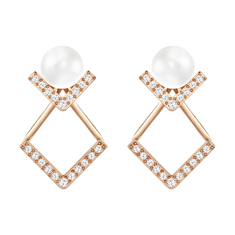 Два образа в одном. Эти очень изысканные серьги, романтичные и женственные, сделаны из кристальных жемчужин и V-образных металлических элементов с покрытием из розового золота и кристальным паве. Крупный V-образный элемент надевают на мочку уха сзади в соответствии с сегодняшней модой. Если его снять, получится более сдержанный образ. серёгРазмер серёг – 2 см. | |
