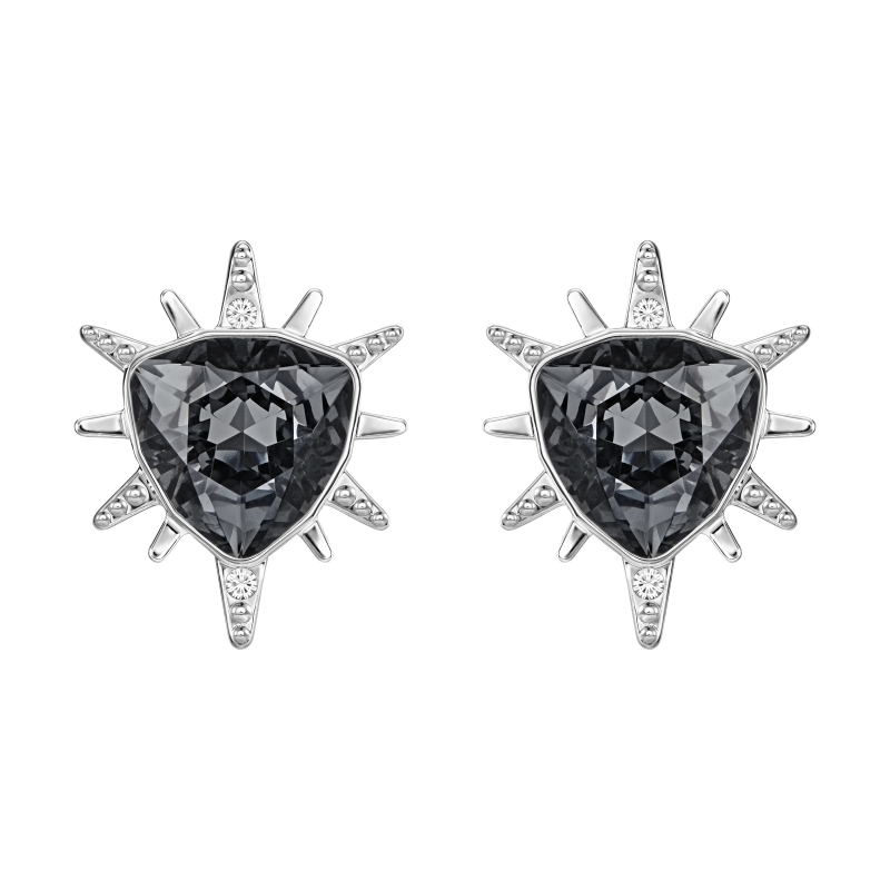 Два образа в одном. Эти серьги из тёмно-серых и прозрачных кристаллов воплощают собой звёздное небо. Их можно носить со стандартными фиксаторами или с фиксаторами в виде дымчатых кристальных жемчужин, чтобы получился модный двусторонний дизайн. В состав комплекта входят обе пары задних элементов. Серьги покрыты родием. Размер – 1,5 см. | |