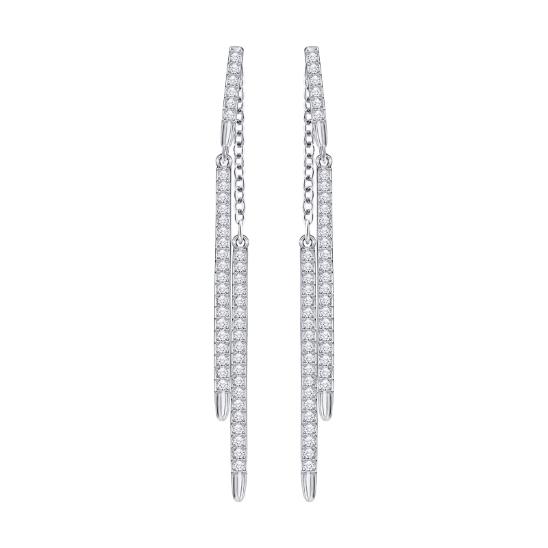Изысканное изделие с мягкими, плавными очертаниями. Прозрачное кристальное паве сверкает на фоне родиевого покрытия. Создайте модное асимметричное сочетание: украсьте одно ухо короткой серьгой, а другое – длинной. Длина серёг с подвесками – 5 см. | |