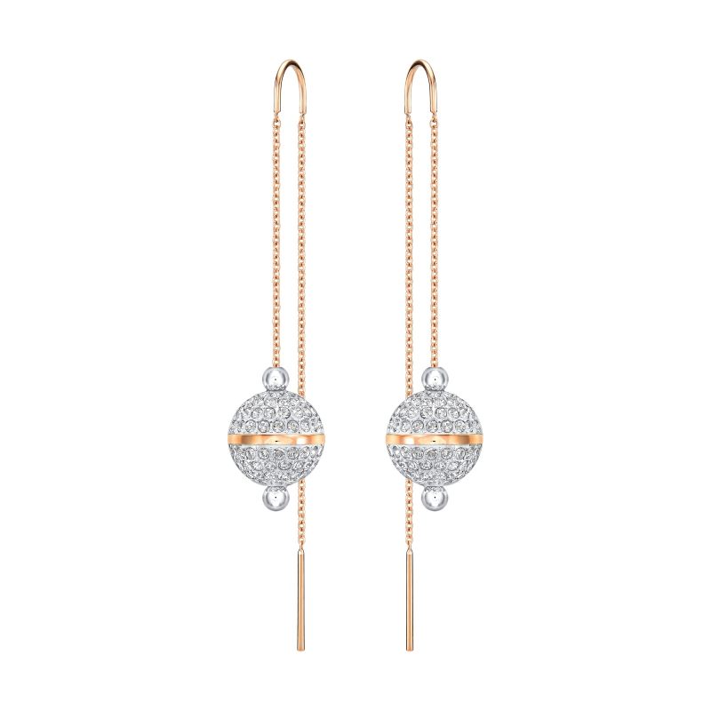 Яркие, в то же время лёгкие и удобные серьги с цепочками Foam источают изысканность. Шары с паве на модных цепочках символизируют небесные тела. Длина каждой из этих серёг с покрытием из розового золота – 5 см.