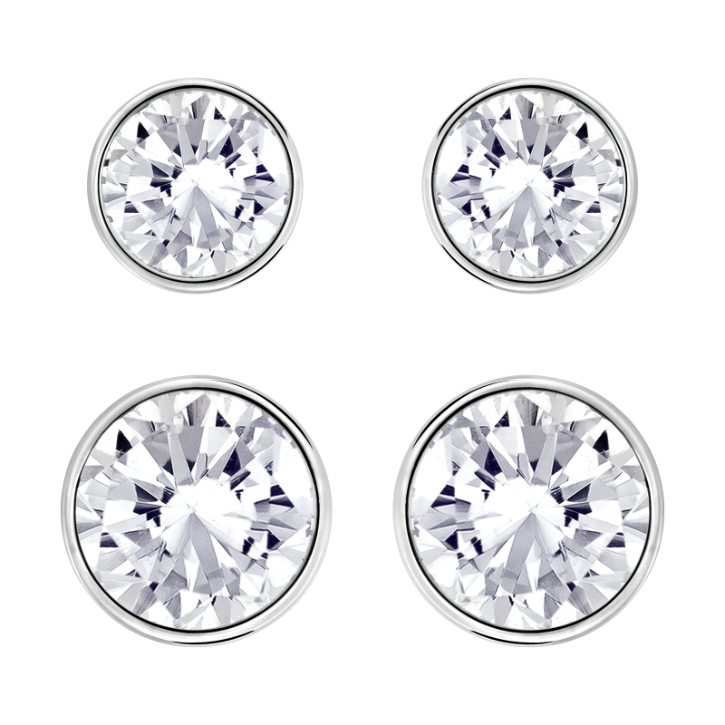 Такой комплект обязательно должен быть у каждой. Он состоит из серёгдвух пар серёг разных размеров с родиевым покрытием. Эти классические нетребовательные украшения сверкают прозрачными кристаллами в традиционной гнездовой закрепке. Это идеальный вариант для работы, досуга и для любого другого случая. Размер одних серёг – 0,5 см, других – чуть меньше. | |