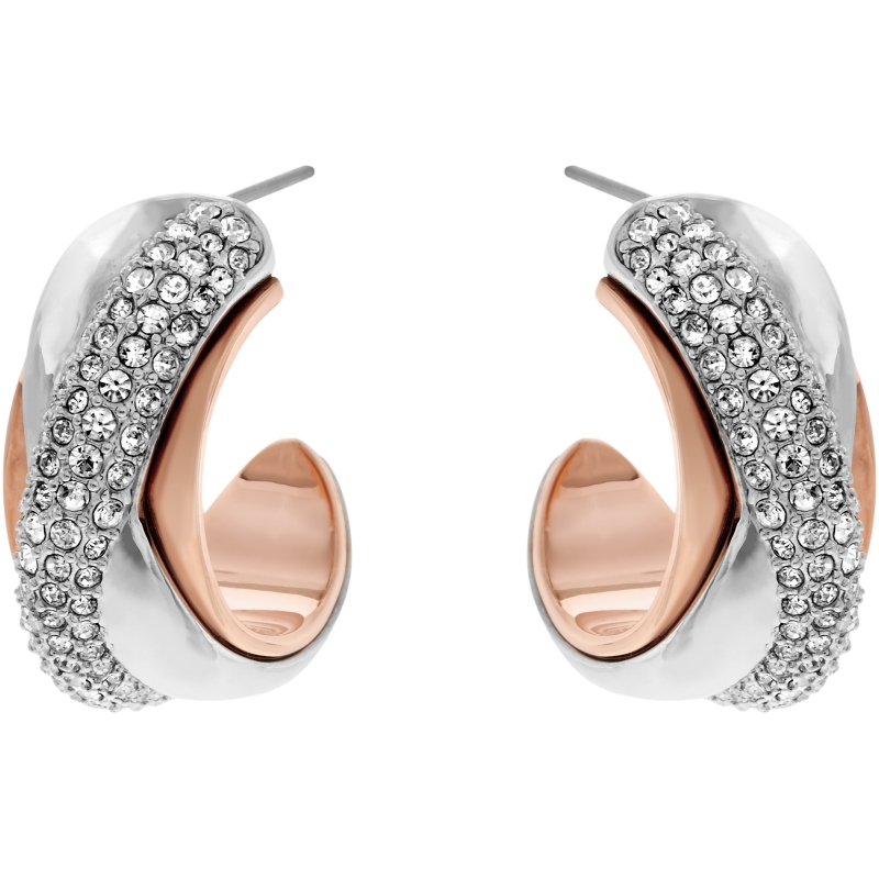 Эти изысканные женственные серьги сверкают прозрачным кристальным паве и поблескивают покрытием из двух металлов. Смелый гладкий силуэт и потрясающий контраст между розовыми и серебристыми оттенками придаёт им гламурный вид. Это украшение идеально смотрится и днём, и вечером. | |