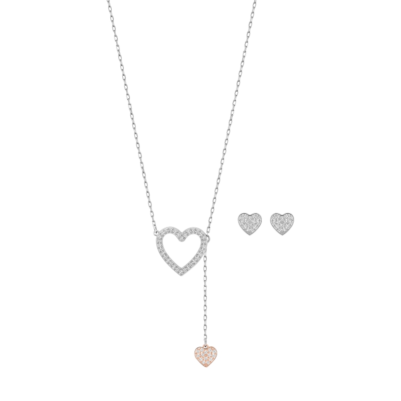 Романтичная новинка популярной коллекции Swarovski Cupid. Этот комплект украшений с родиевым покрытием состоит из серёгпары серёг и модной подвески Y-образной формы, дополненной сердцем с покрытием из розового золота. Каждый элемент сверкает прозрачным кристальным паве. Это идеальный подарок для любимой на День святого Валентина. Длина ожерелья – 42 см, серёгразмер серёг – 0,5 см. | |