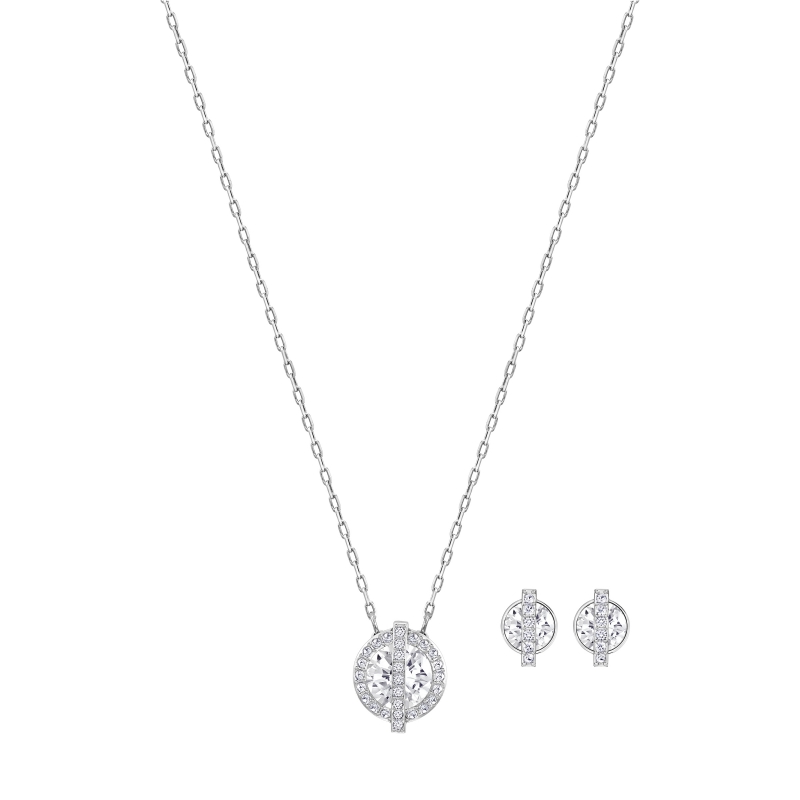 На создание коллекции Favor наших дизайнеров вдохновили небесные тела. Полоса кристального паве словно парит над полностью огранённым кристаллом.Этот комплект состоит из ожерелья и пары серёг с родиевым покрытием. Он станет идеальным подарком.Длина ожерелья – 38 см, серёгразмер серёг – 1 см. | |
