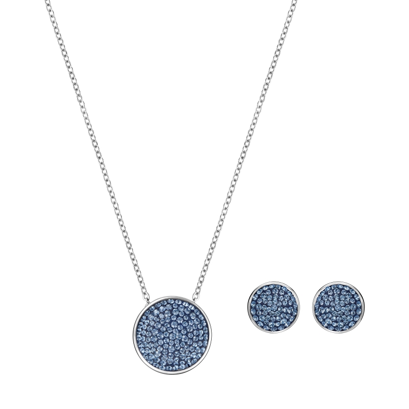 Неземная элегантность для любой обстановки. Этот потрясающий комплект состоит из подвески с палладиевым покрытием на цепочке длиной 38 см и пары серёг-пуссетов (1 см). Изделия округлой формы украшены синими кристаллами в эксклюзивной закрепке Swarovski Pointiage®. Украшения словно символизируют небесные тела. Это идеальный подарок для ценителей классического блеска. | |