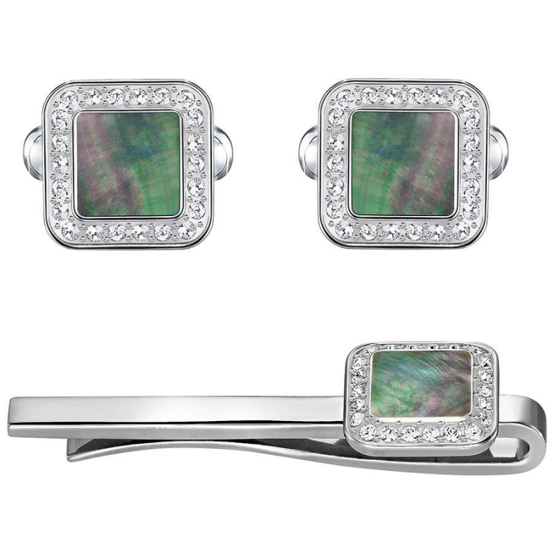Этот комплект украшений актуального квадратного силуэта состоит из булавки для галстука Effect и пары запонок аналогичного дизайна. Каждое изделие из полированной нержавеющей стали украшено чёрными жемчужинами. Идеальный подарок! Размер запонок – 2 см, булавки для галстука – 5 см. | |