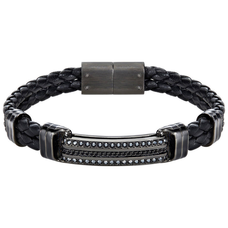 Нетребовательный браслет из чёрной плетёной кожи с летней нотой: чуть поблёскивающими кристаллами. Это отличный подарок для мужчины. Длина браслета Express – 20 см. Мы предлагаем также размер L (22 см).