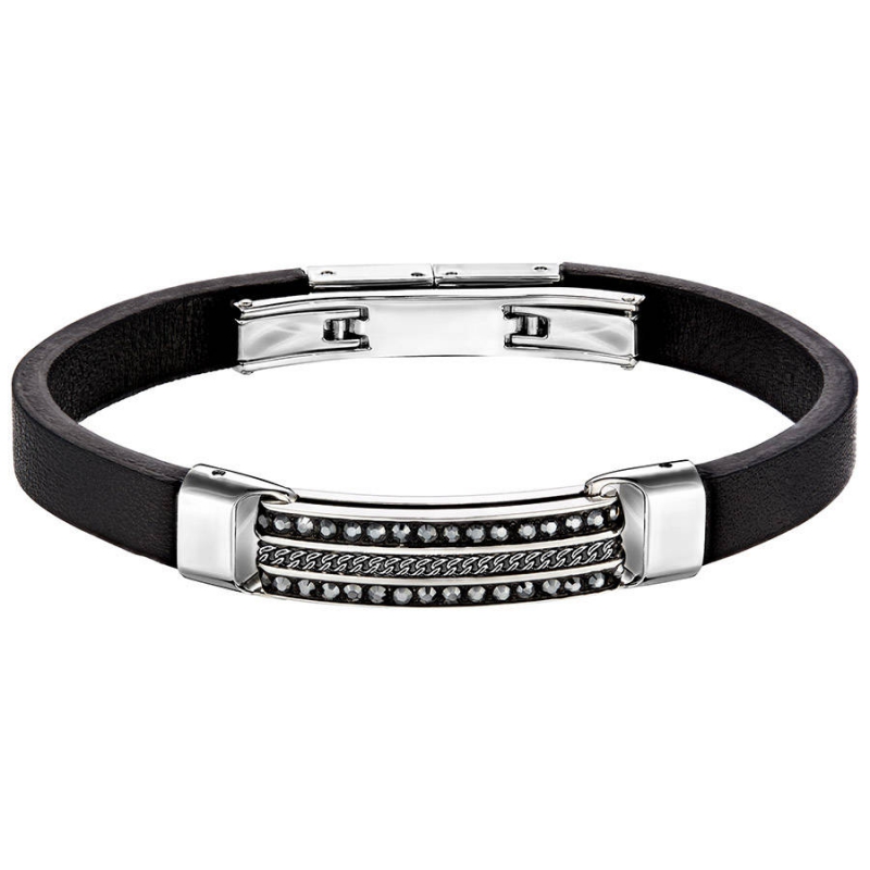 Современный дизайн в мужском стиле с летней нотой: со слегка мерцающими кристаллами. Кожаный браслет длиной 18 см сделан из нержавеющей стали и металла с чёрным PVD покрытием. Он снабжён вставкой, которая позволяет при необходимости удлинить это украшение. Мы предлагаем также размер L (20 см). | |
