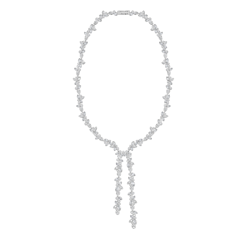 Это романтичное ожерелье внесёт в ваши наряды гламурную ноту. Украшение в виде изумительного каскада из металла с родиевым покрытием сверкает прозрачными кристаллами. Инновационная наклонная застёжка с надставкой позволяет легко регулировать длину. | |