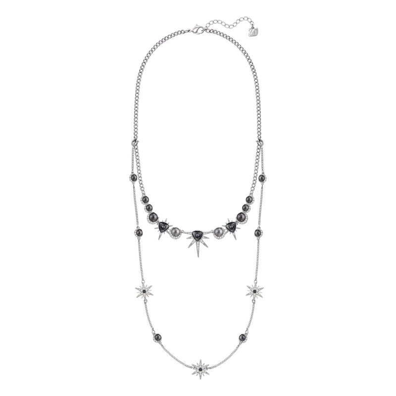 Три в одном! Это модное изделие можно носить в качестве многослойного украшения или разделить на два ожерелья. Это произведение с родиевым покрытием, воплощение звёздного неба, сверкает шикарными серыми и прозрачными кристаллами, а также дымчатыми кристальными жемчужинами. Небесные мотивы с элементами глэм-рока. Длина ожерелья – 38 см. | |