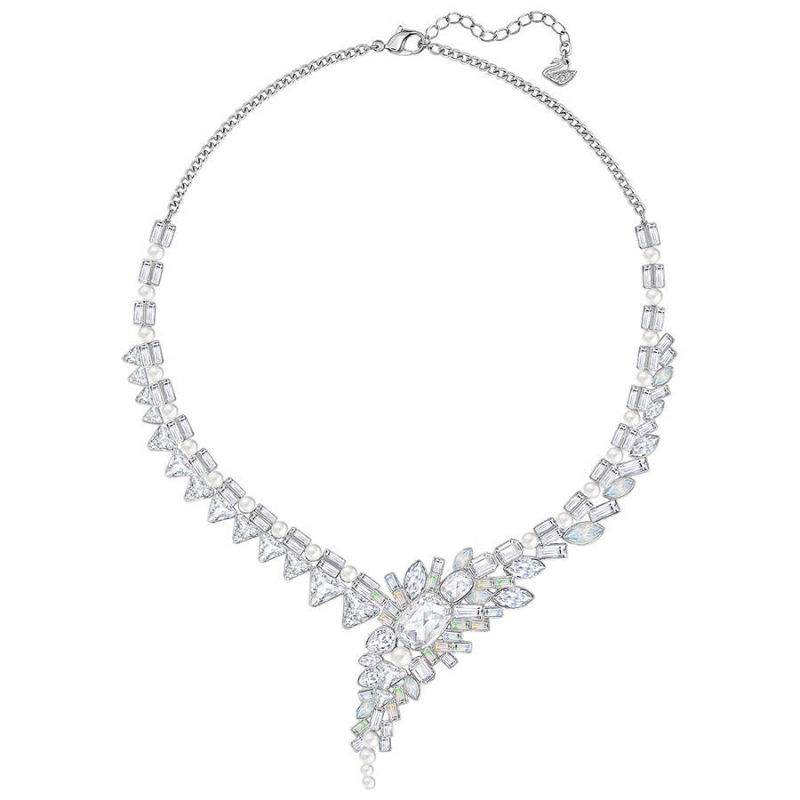 Это выразительное украшение с палладиевым покрытием, символизирующее кристаллы льда, идеально подходит для рождественского сезона. Изделие актуальной асимметричной формы украшено кристальными жемчужинами и кристаллами разных геометрических огранок в прохладных расцветках. Это многогранное украшение можно добавить к рубашке, чтобы получился модный образ, а вечером надеть с элегантным платьем. Длина ожерелья – 38 см. | |