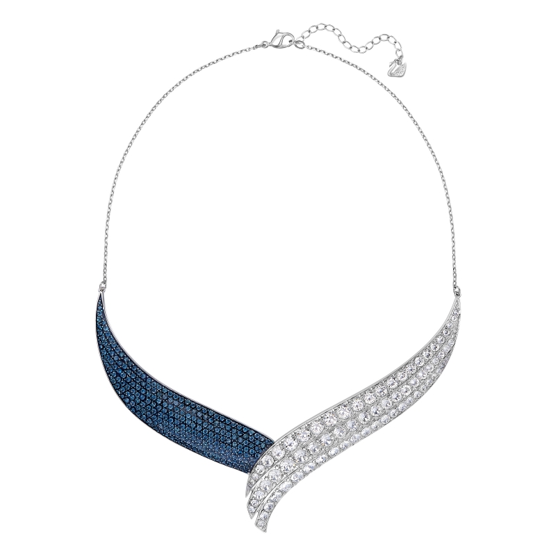 Благодаря этому выразительному ожерелью ваш вечерний наряд окажется в центре всеобщего внимания. Одна сторона этого потрясающего украшения плавных органических очертаний сверкает прозрачным кристальным паве. Другая сделана из синей эпоксидной смолы с синим паве. Благодаря родиевому покрытию металл блестит ещё ярче и не темнеет. Длина ожерелья – 40 см. Мы предлагаем и другие изделия аналогичного дизайна. | |
