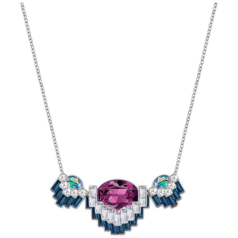Это потрясающее изделие создано в честь 60-летия легендарной техники Swarovski Aurora Borealis. Это ожерелье сверкает наподобие Северного сияния синими, лиловыми и переливчатыми кристаллами разных огранок в гнездовой закрепке. Это поистине изысканное ожерелье покрыто палладием. Длина – 38 см. | |