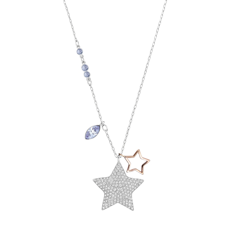 Средняя подвеска Swarovski Duo Star сделана в виде двух звёзд: одна покрыта прозрачным кристальным паве, другая позолочена. К подвеске прилагается цепочка, украшенная тёмно-синими кристаллами. Это идеальный подарок и замечательное украшение для особых случаев. | |