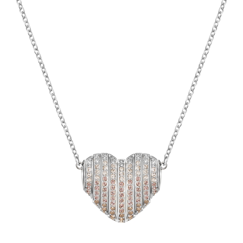 Это универсальное романтичное украшение шикарно смотрится не только в День святого Валентина, но и круглый год. Кокетливое сердце можно носить по-разному: на одной стороне сверкающее кристальное паве плавно переходит от прозрачного к розовому, на другой полосы паве чередуются с полосами металла, покрытого розовым золотом. Это идеальный подарок для любимой и прекрасное дополнение к другим украшениям Swarovski. К подвеске размером 2 х 1,5 см прилагается цепочка длиной 40 см. | |