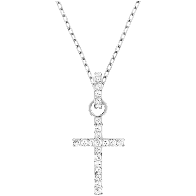 Эта прекрасная подвеска в виде креста с родиевым покрытием и прозрачным кристальным паве лучится элегантностью. Неизменно популярный мотив превращает цепочку в изысканное ожерелье. Это универсальное украшение, которое подходит к любому стилю. | |