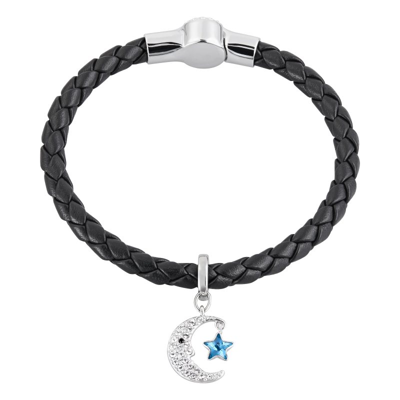 Этот кокетливый оригинальный комплект состоит из браслета из чёрной кожи и подвески в виде полумесяца с родиевым покрытием и кристальным паве. Добавьте другие подвески Swarovski, чтобы получилось индивидуальное произведение. Это отличный подарок. | |