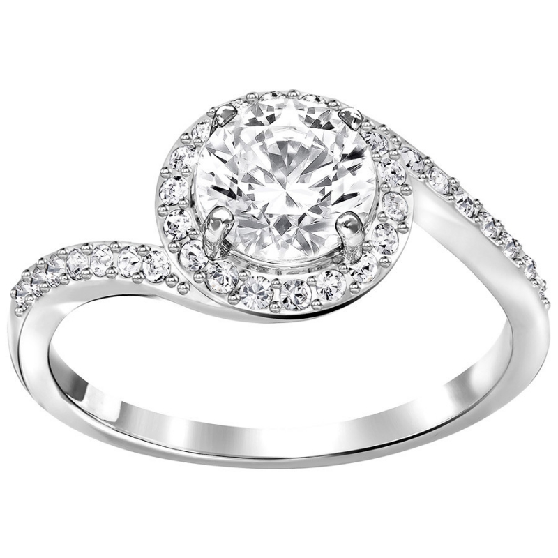 Это изогнутое кольцо – изысканная, умело исполненная версия украшения классического силуэта. Волна из прозрачного кристального паве сверкающим завитком облегает центральный круг. Основа покрыта родием: редким драгоценным металлом из семейства платины, который не потемнеет.