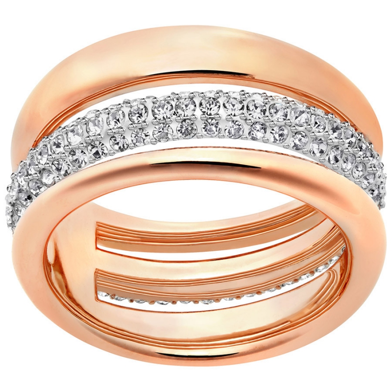 Это роскошное кольцо, классическое и в то же время актуальное, прекрасно смотрится и днём, и вечером. Изделие органического силуэта в виде трёх переплетённых колец блестит покрытием из розового золота на металле и прозрачным кристальным паве. Оно гармонично впишется в классический стиль, а в сочетании с другими украшениями поможет создать броский образ.
