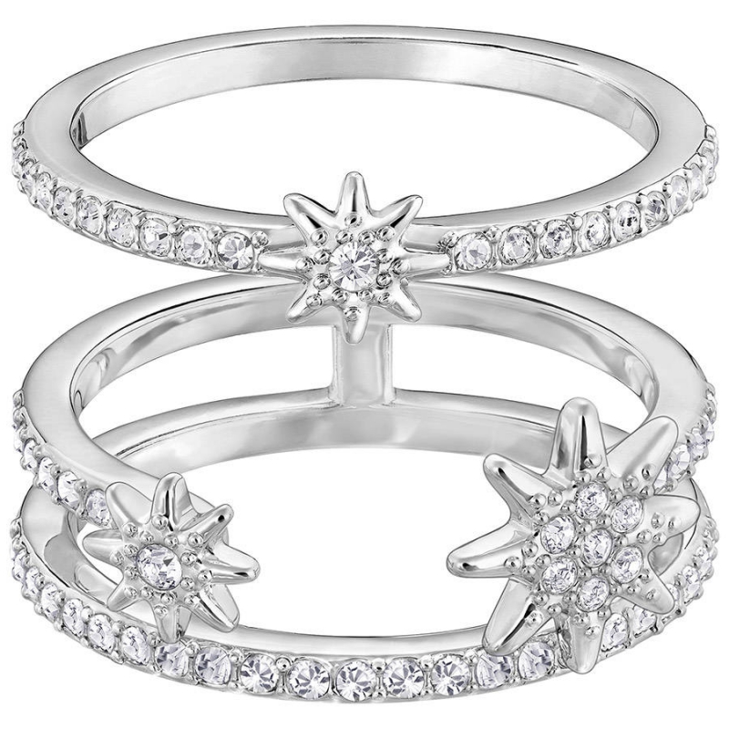 Оригинально и изысканно. Этот комплект идеально подходит для праздничного сезона. Он состоит из одного одинарного и одного двойного кольца.Прозрачное кристальное паве восхитительно сияет на фоне металла с родиевым покрытием.Добавьте другие кольца Swarovski, и получится актуальный модный образ.