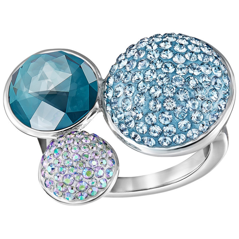 Это роскошное кольцо внесёт в ваш образ ноту космического блеска. Три сферы с палладиевым покрытием украшены голубыми кристаллами в эксклюзивной закрепке Swarovski Pointiage®. Неземная элегантность для любой обстановки. Добавьте несколько аккуратных гладких колец, и получится современный образ.